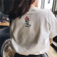 SALYMOUSY新款复古风后背领口刺绣玫瑰花水洗竹节棉短袖T恤
