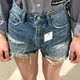 SLYMOUSY爆款高腰单排扣水洗毛边牛仔短裤