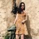 SLYMOUSY甜美后绑带蝴蝶结碎花吊带裙连衣裙