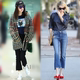 SLYMOUSY明星同款 高腰不规则毛边小微喇九分牛仔裤
