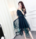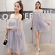 2017韩版名媛飞飞袖蓬蓬网纱一字领露肩抹胸连衣裙
