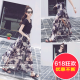 夏季新品 夏装韩版风百搭侧开叉印花高腰雪纺中长裙不规则半身裙