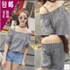 2017新款 夏韩版一字领露肩上衣宽松荷叶袖短袖衬衫娃娃衫女潮T恤