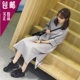 2017春季 H型街头欧美长裙九分袖圆领高腰套头纯色黑色灰色连衣裙