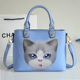 女士手提包2017新款女包猫猫印花夏季大单肩斜挎休闲欧美简约百搭
