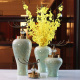 新中式陶瓷花瓶仿真花艺摆件 创意电视柜插花器 竹节青釉瓶装饰品