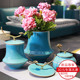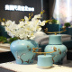 新中式陶瓷花瓶仿真花艺摆件 创意电视柜插花器 湖蓝釉瓷瓶装饰品