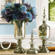 蓝色花鸟金属盖陶瓷现代新中式插花瓶摆件客厅摆设家居简约装饰品