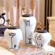 新中式陶瓷花瓶仿真花艺摆件 创意电视柜插花器 黑白格瓷瓶装饰品