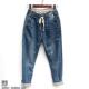 2017春秋女士长裤加大码胖MM牛仔裤卷边哈伦裤宽松紧腰潮休闲做旧