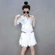 欧洲站2017春装新款纯棉圆领网纱珠片绣花短袖休闲运动时尚套装女