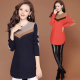 2016长袖羊毛衫女简约修身印花短款显瘦套头羊绒衫毛衣打底衫秋冬