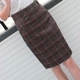 秋冬季女士格子毛呢半身裙及膝高腰包臀中裙款一步裙