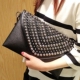 2017新款女士信封包韩国时尚手拿包裂纹铆钉手腕包单肩斜跨女包潮