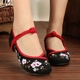 族韵老北京女布鞋 牛筋底复古绣花鞋内增高单鞋广场舞鞋 妈妈鞋
