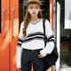 ulzzang粗条纹韩国秋装新款宽松套头圆领条纹毛衣女