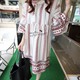 2017韩版民族风刺绣元素系带流苏宽松竖条纹喇叭袖连衣裙女裙子夏