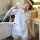 2017夏季新款韩版文艺范宽松大口袋短袖个性V领套头白色棉麻T恤女