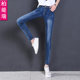 个性中腰牛仔裤女小脚铅笔长裤子油漆点春秋新款显瘦弹力学生韩版