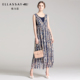 ELLASSAY歌力思春夏女装 优雅真丝印花长款v领无袖连衣裙长裙