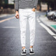 春夏男士纯白色九分裤男修身破洞牛仔裤韩版微弹小脚显瘦休闲裤子
