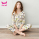 猫人纯棉睡衣女夏短袖甜美中袖长裤套装女士棉布夏天家居服