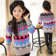 女童圆领毛衣新款儿童羊毛衫羊绒衫女大童针织衫2015秋冬加厚新款