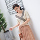2017夏季韩版新款V领披肩系带收腰显瘦纯色中长款大摆雪纺连衣裙