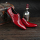 时尚鳄鱼纹潮流英伦漆皮亮面商务正装压花皮鞋尖头系带发型师男鞋