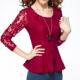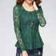 OL纱网镂空蕾丝衫春秋新款大码女装上衣荷叶边修身圆领长袖打底衫