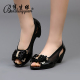 春夏季真皮妈妈女鞋坡跟鱼嘴单鞋大码中跟网鞋中年女凉鞋软底