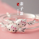 S925纯银手镯2017年热卖招财猫亲子手镯红色烤漆银手镯宝宝手镯
