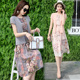 时尚套装裙2017夏装新款女装印花中长款松紧腰两件套雪纺连衣裙女