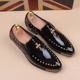 春秋尖头英伦漆皮时尚布洛克休闲男士皮鞋克罗心男鞋发型师潮鞋