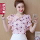 V领打底衫2017女装夏季荷叶边上衣甜美碎花雪纺衫新款短袖衣服潮