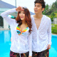 海边情侣防晒衣长袖男士字母海滩服度假薄款沙滩防晒服女开衫大码