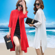 夏天防晒衣女中长款沙滩雪纺长衫薄开衫开叉海边外披百搭披肩外套
