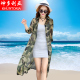 夏天长衫女迷彩防晒衣女中长款度假薄外套海边沙滩披肩雪纺开衫潮