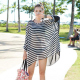 海边度假条纹雪纺衫蝙蝠衫防晒衣沙滩比基尼温泉外搭泳衣套头罩衫