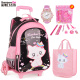 儿童拉杆书包三轮可爬楼小学生书包女生1-3-6年级可拆卸手拉书包