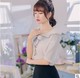 2017夏季新品女百搭时尚甜美减龄海军风镶边小清新蝴蝶结中袖衬衫