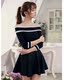 2017夏季新品女百搭气质显瘦修身韩版荷叶边露肩一字领针织连衣裙