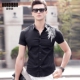 豪帝堡 2016夏季新款男士衬衣薄款印花休闲衬衫男短袖韩版修身潮
