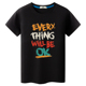 七酷万事俱备青少男圆领纯棉印花短袖T恤男女加大码字母学生半袖