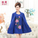 中老年妈妈春秋装连衣裙假两件妈妈中长款刺绣牡丹花中年女装