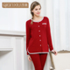 女士上衣外穿保暖内衣加绒加厚套装加肥加大码中老年本命年保暖衣