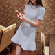 2017新款韩版女装娃娃领短袖大码宽松A字裙子夏季中长款连衣裙女