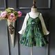 、童装2017春季新品女童压皱印花假两件公主吊带裙喇叭袖连衣裙