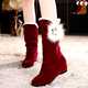 磨砂皮中筒靴女秋冬新款平底中跟短靴毛毛靴机车靴保暖雪地靴棉靴