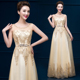2017夏季时尚晚礼服长款金色宴会主持人礼服女结婚礼服新娘敬酒服